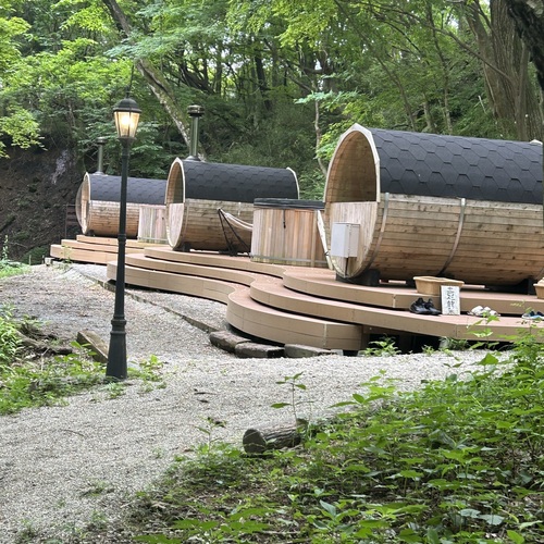 薪焚きサウナ・大自然のシングル水風呂・大自然での森林浴を150分堪能できるバレルサウナ貸切プランです。