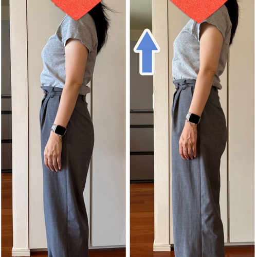 終わって立ったときに、すごく楽に立つことができて、before after の写真で反り腰がよくなっていることがわかりました、
