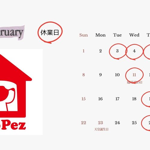 定休日 不定休(主に木・金曜日)下記フォトギャラリーのカレンダーをご確認ください