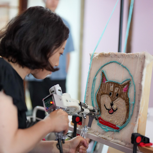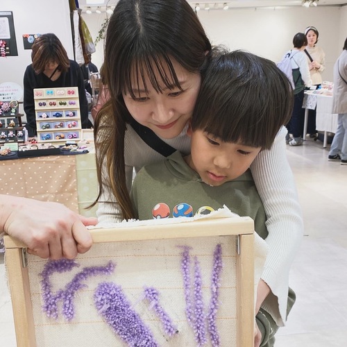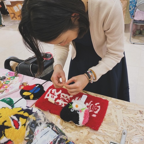 初めてタフティングに挑戦しました。丁寧に作り方を説明していただき、気になった点も細かくアドバイスをもらいながら30cmのラグで2時間少しで完成することができました。
