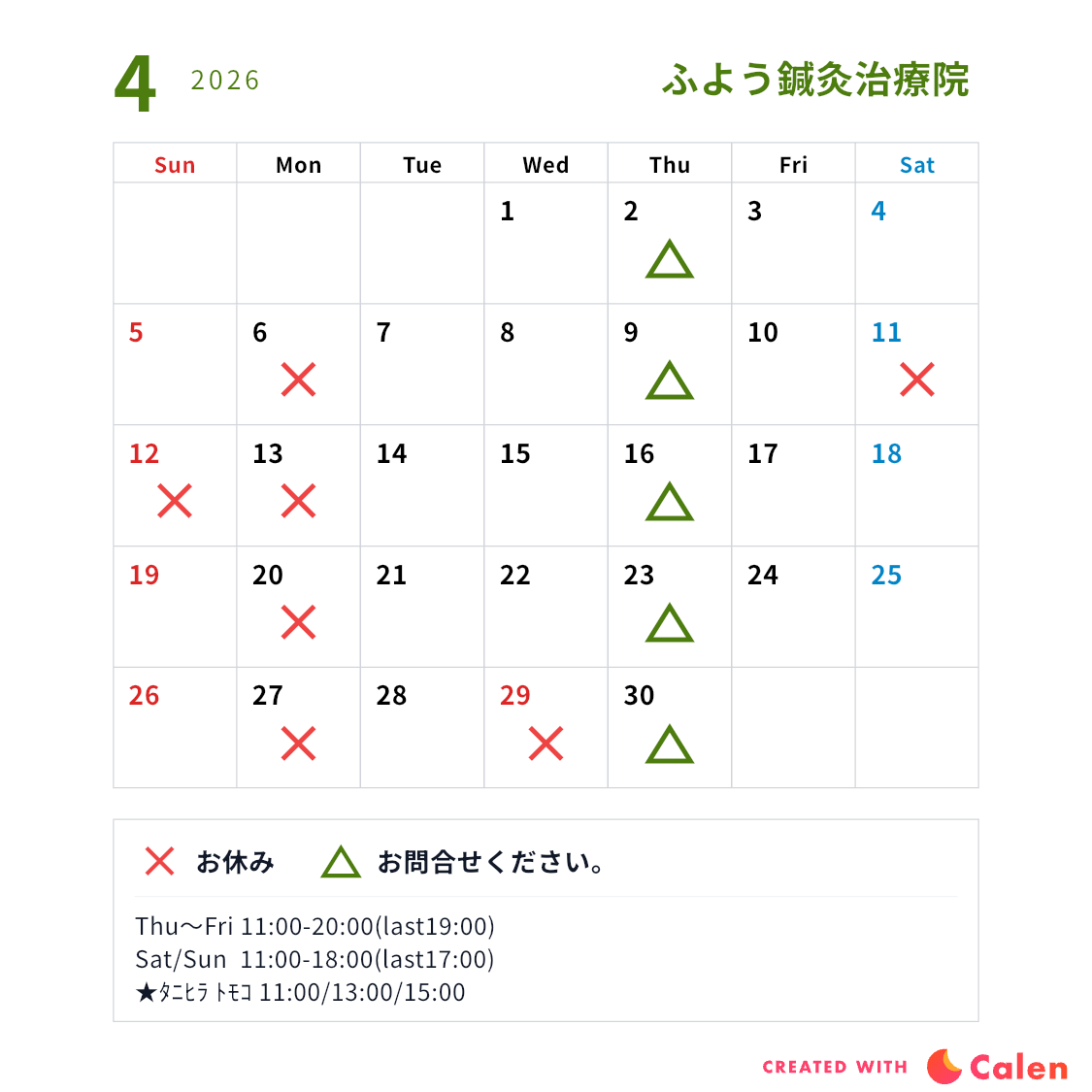 4月のスケジュール