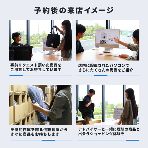 用途に応じたイメージやご希望の商品を事前にリクエストいただければ、商品アドバイザーがお客様のご来店までに適した商品数種類を準備してお待ちしております。