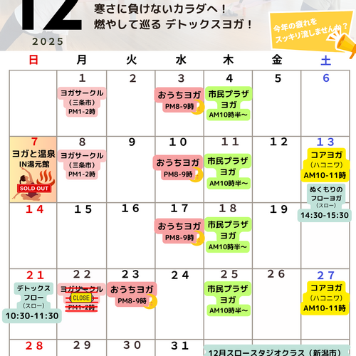 **12月|デトックスフロー!!寒さに負けないカラダへ!燃やして巡るデトックスヨガ!**