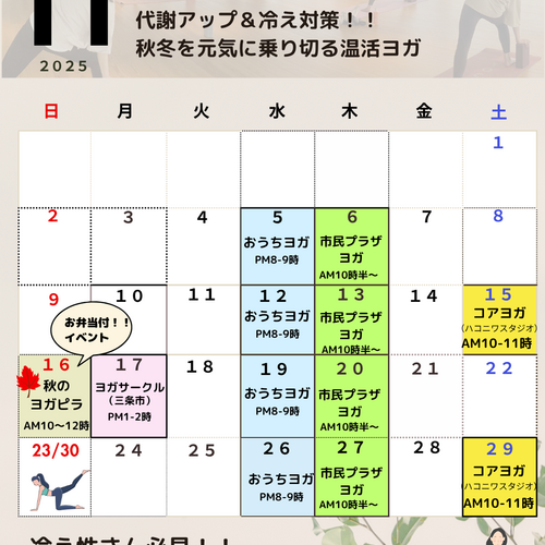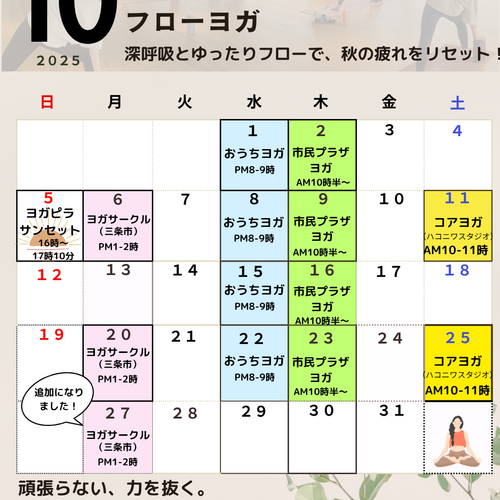 10月のスケジュールUP!!【ヨガクラスご案内】