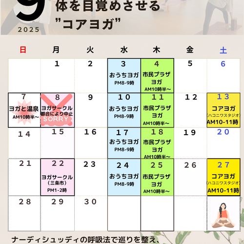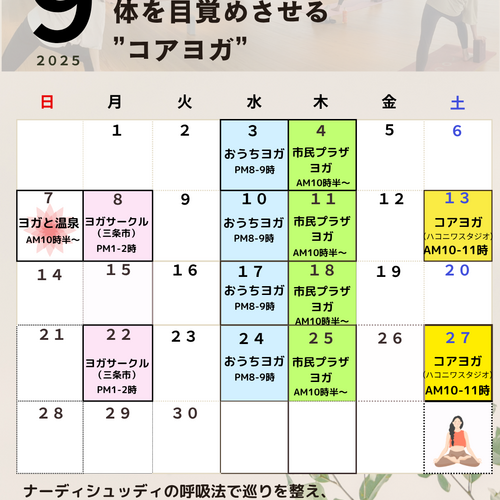 【修正版】9月ヨガクラスのご案内【テーマ:秋のはじまり、体を目覚めさせる“コアヨガ”】