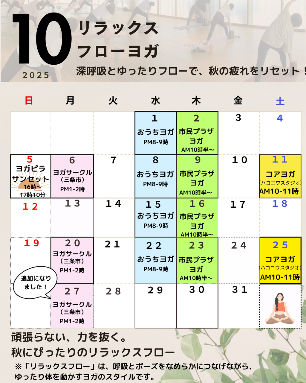 10月のスケジュールUP!!【ヨガクラスご案内】