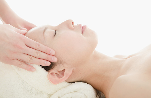 オアシス(ホホバ油)を使用してフェイシャルマッサージを行います。
