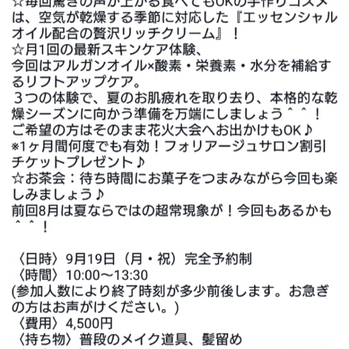 9/4手作りコスメ女子会のお知らせです