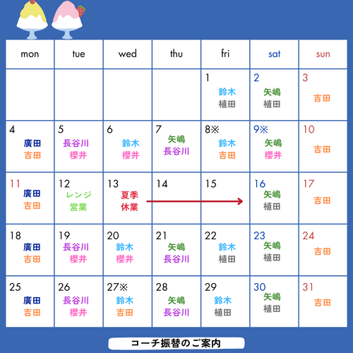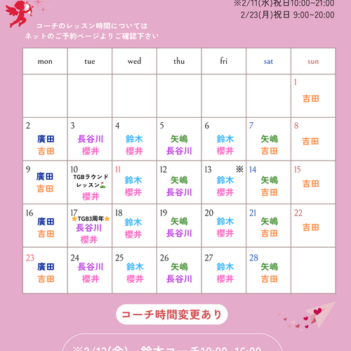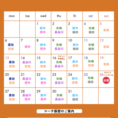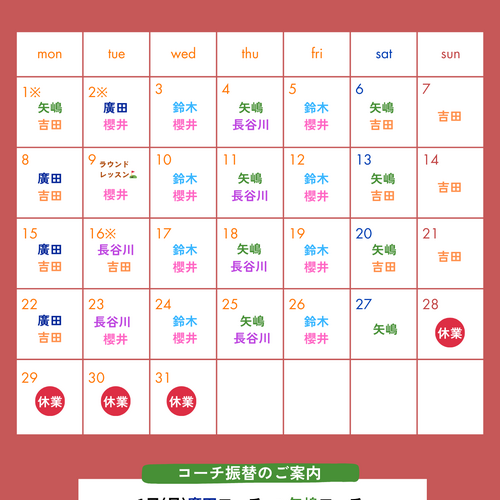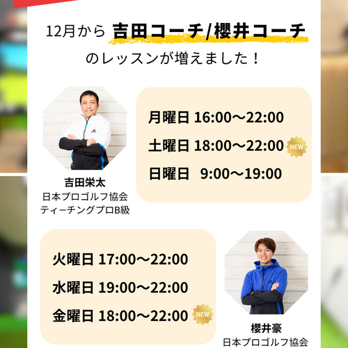 【📢】吉田コーチ・櫻井コーチのレッスン曜日増加のご案内