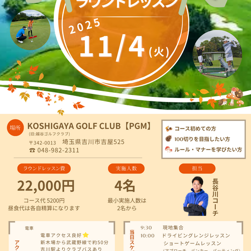 【お知らせ】11/4(火)ラウンドレッスン開催決定⛳