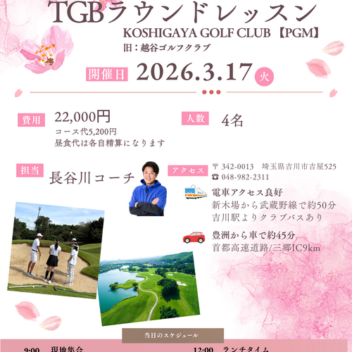 【お知らせ】3/17(火)ラウンドレッスン開催決定⛳