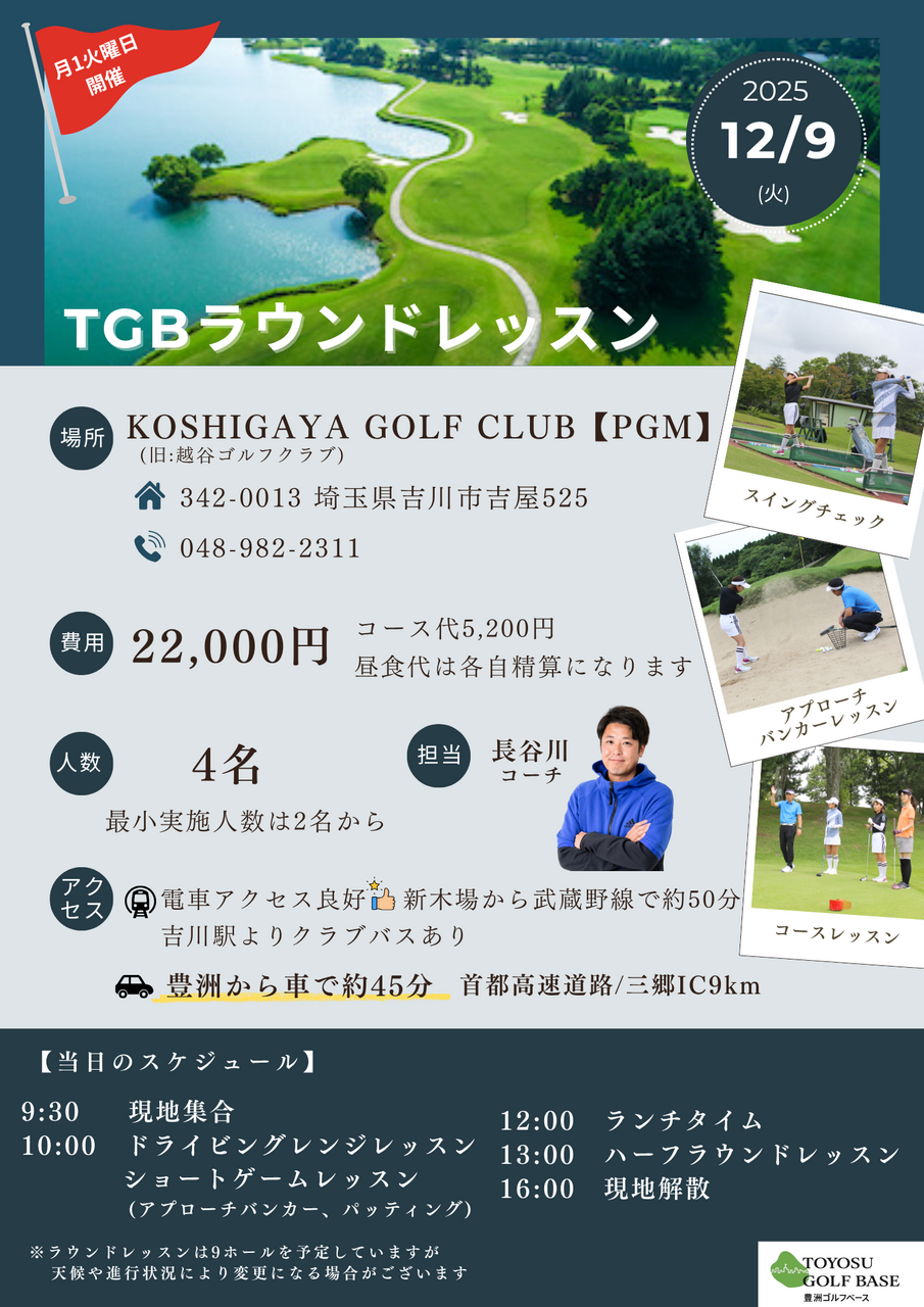 【お知らせ】12/9(火)ラウンドレッスン開催決定⛳