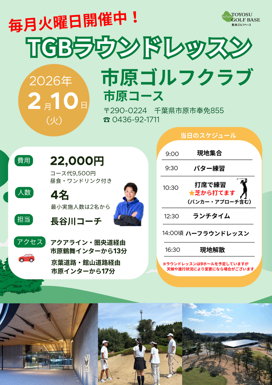 【お知らせ】2/10(火)ラウンドレッスン開催決定⛳