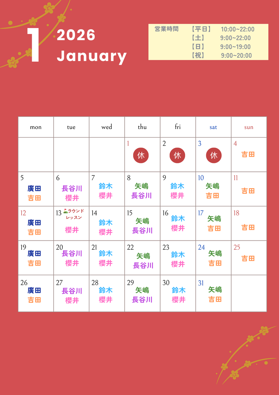 【📢】1月営業スケジュール