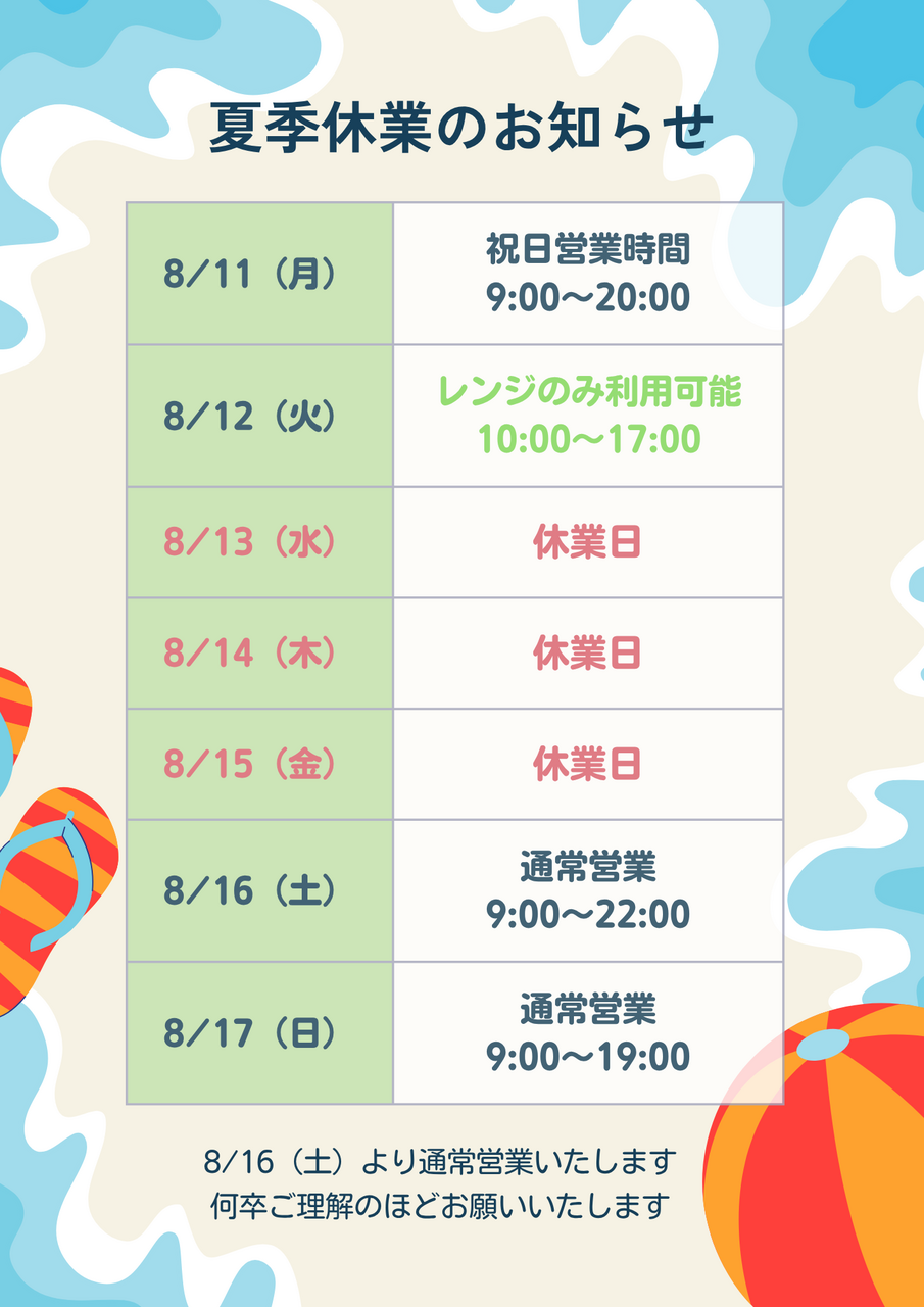 【お知らせ】夏季休業のご案内🎐