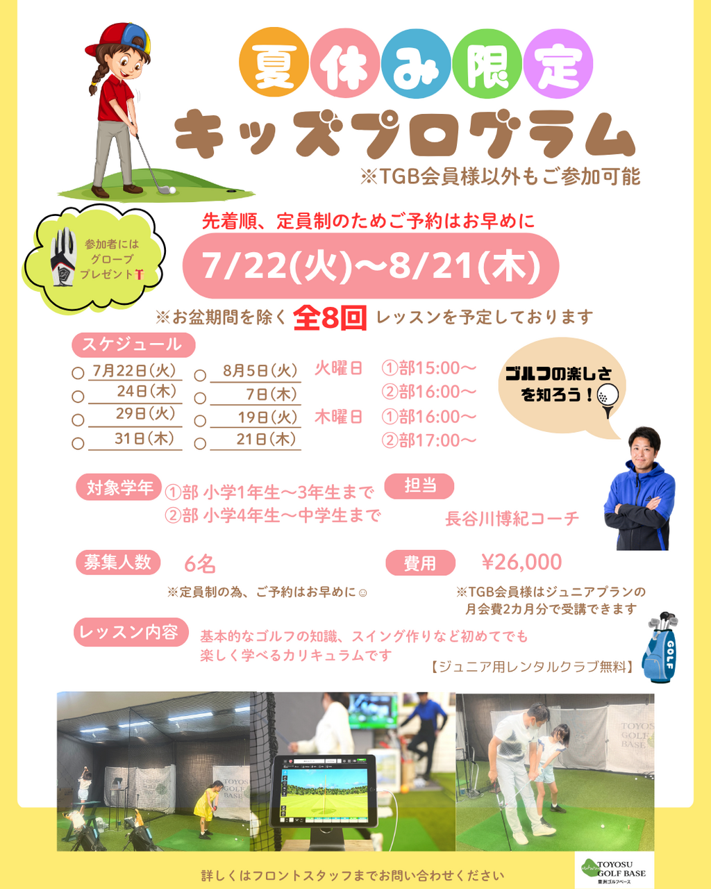 【お知らせ】🌻夏休み限定キッズプログラム🌻