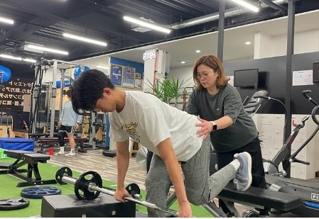 トレーナーの川上さんはとても分かりやすく親切に教えてくださる方でした!Alの分析で、反り腰、左下がりになっていることがわかり、そこの姿勢改善から取り組みたいと思いました。課題分析をしてから、重点的にトレーニングをしていくところが素晴らしかったです。