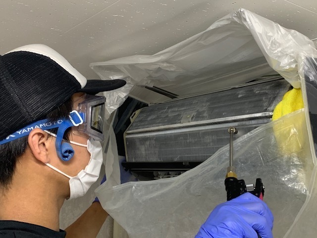 洗浄後に内部熱交換器部分などに「防カビ」「消臭」「抗菌」効果のある専用コーティングとなります。
