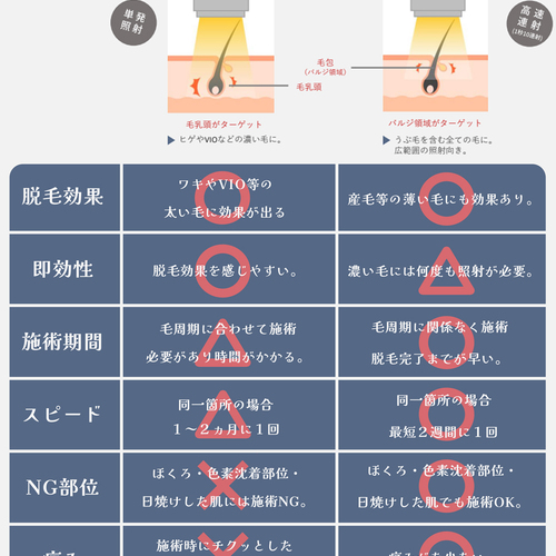 当店は SHR方式/IPL方式を切り替えできる国産脱毛機を導入し、