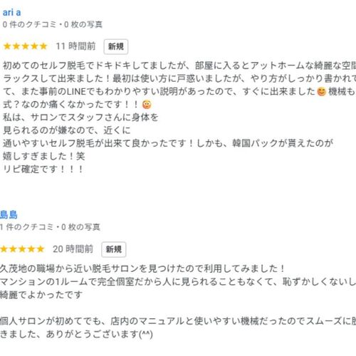 【口コミありがとうございます】完全無人・完全個室の安心セルフ脱毛