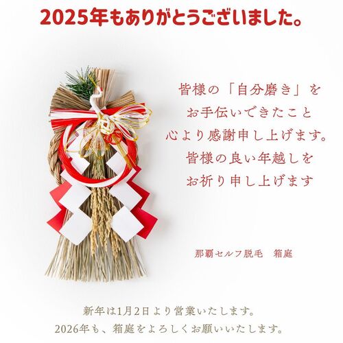 【2025年ご挨拶】那覇・久茂地のセルフ脱毛「箱庭」から感謝を込めて|年末年始の営業案内と2026年の自分磨き