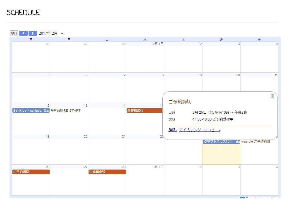 とHPのSCHEDULEページに逐一詳細を記載するよう心掛けておりますので、よろしければご予約のお問合せ前にチェックしてみてくださいね。