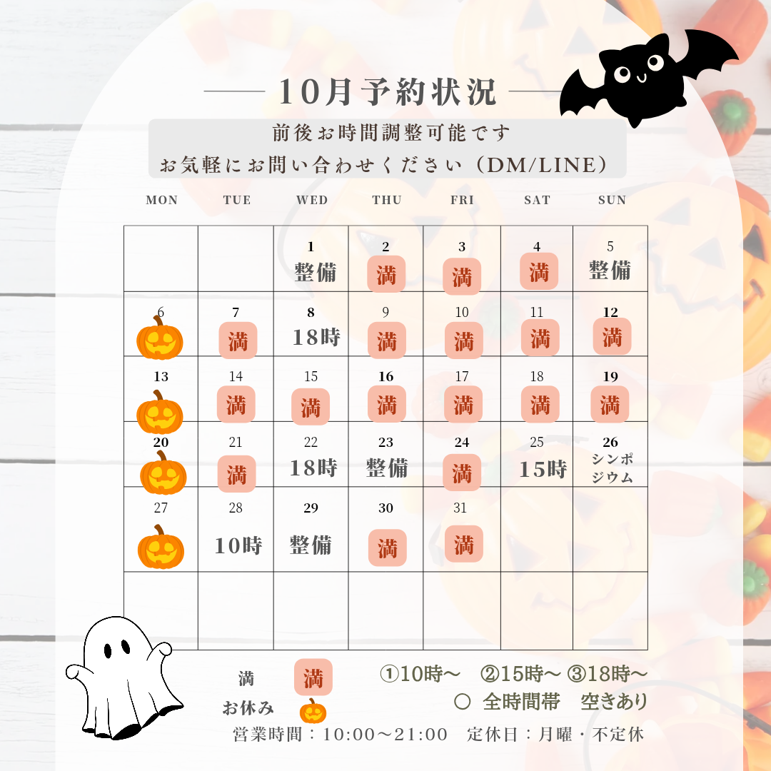 🎃10月ご予約状況🎃