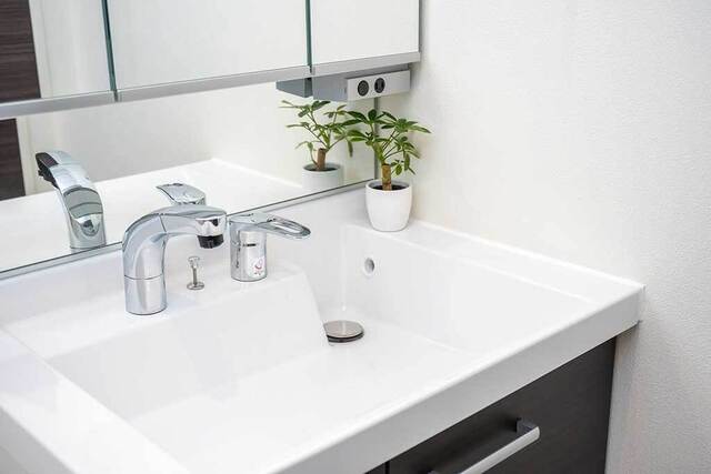 洗面台本体全般・壁・床・照明器具・給湯器(表面のみ)・洗濯機(表面のみ)・窓ガラス(内側のみ)・収納扉表面・ドア両面