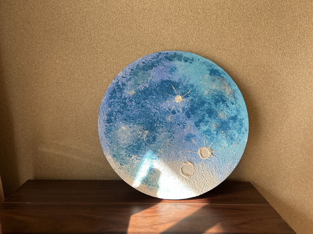 円形のキャンバスに、好きな色で、好きなように、月を描いてみましょう。