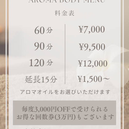 90分 ¥7,500 うつ伏せ+仰向け施術