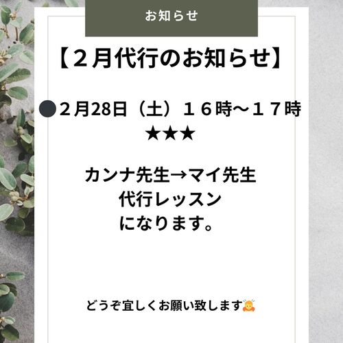 2月代行レッスンのお知らせ