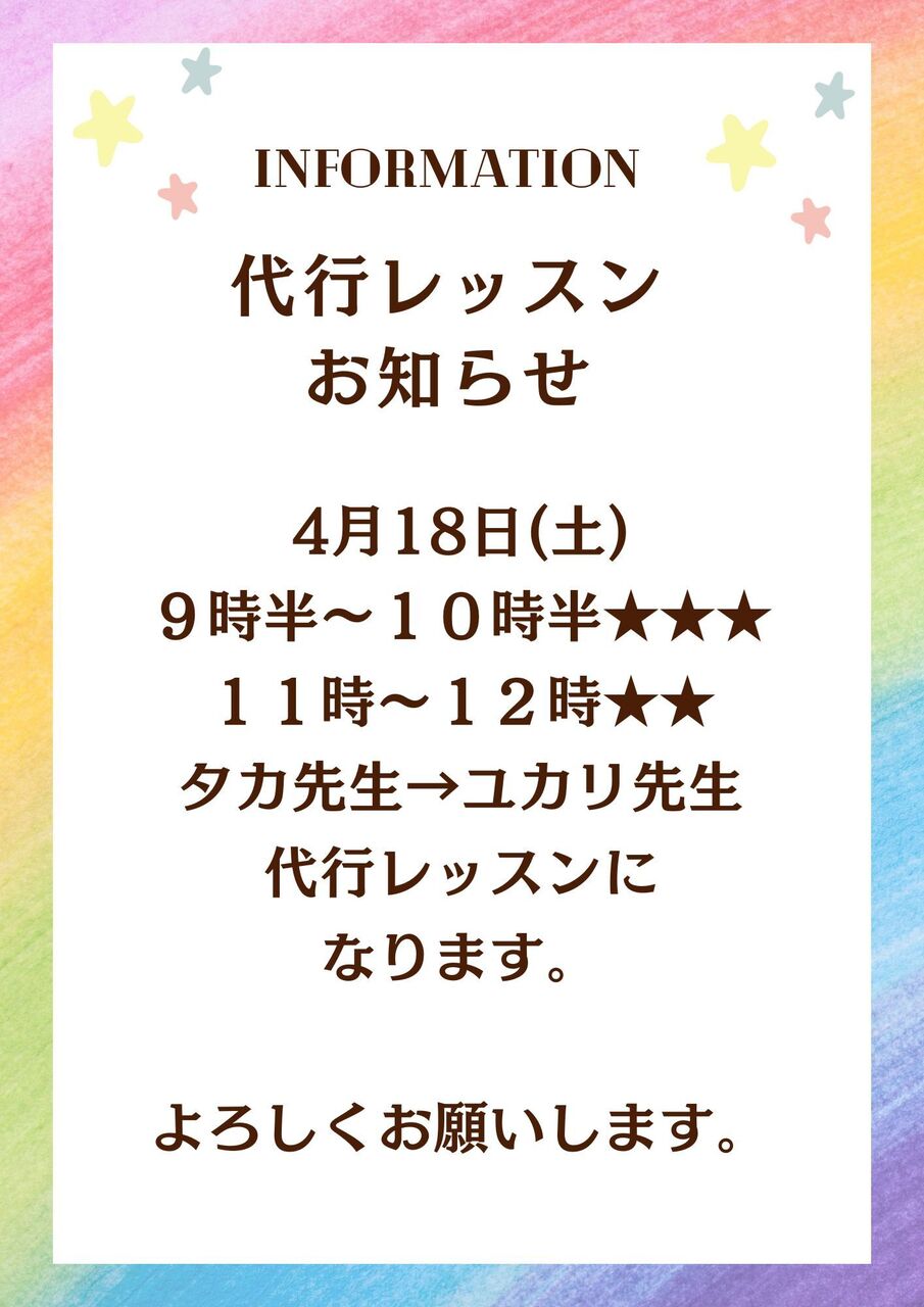 4月の代行レッスンのお知らせ