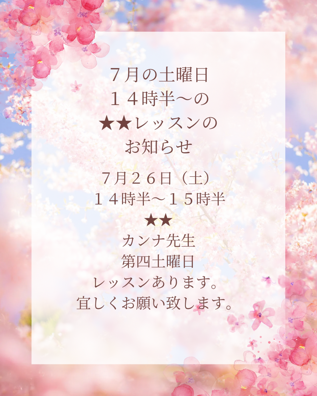 7月 土曜日14時半のレッスン日