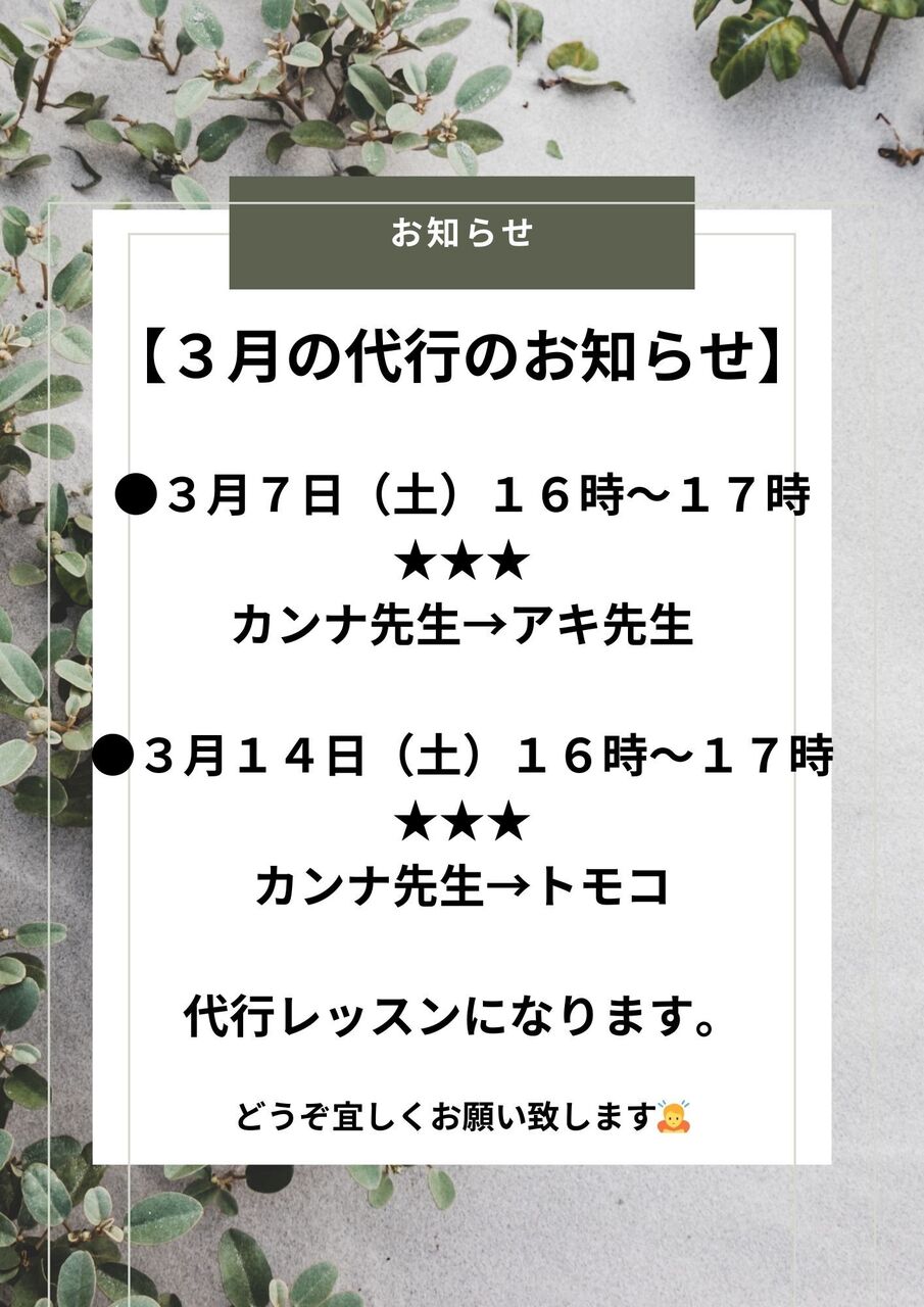 3月代行レッスンのお知らせ