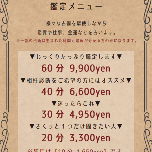 心理を読み解くタロットなどをあわせた最新の学術理論を使って複合的に鑑定します。