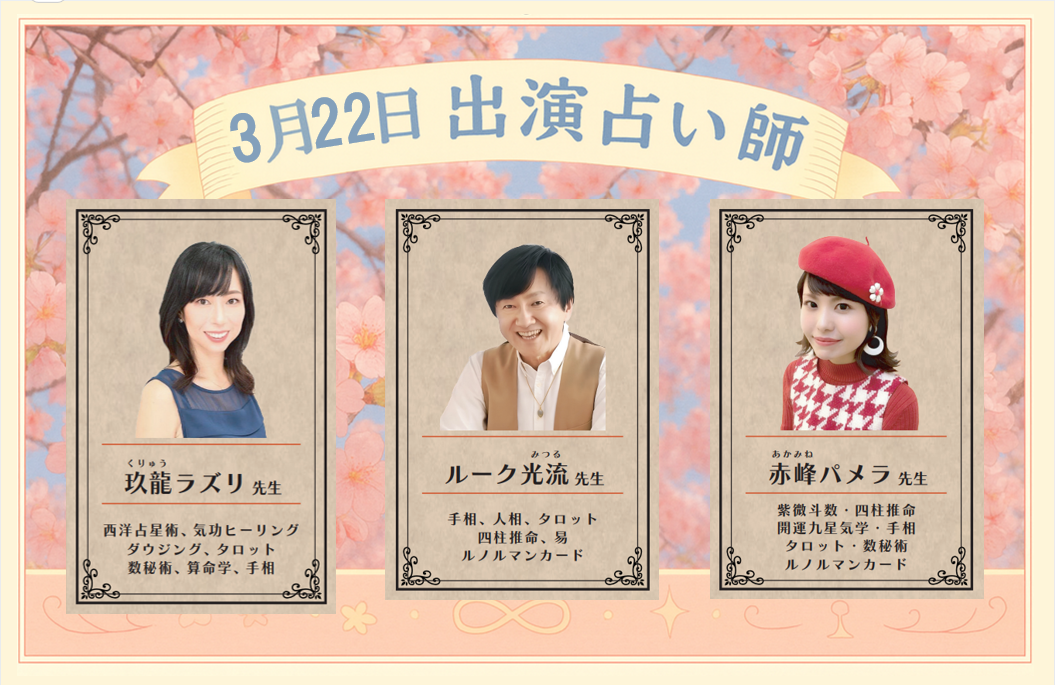 3月22日(日) 出演占い師