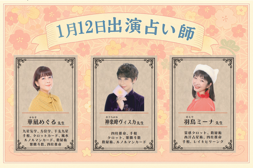 1月12日 本日の出演占い師