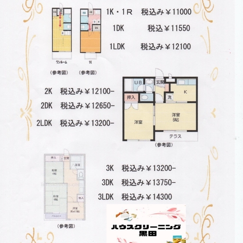 3K ¥13,200- 3DK¥13,750- 3LDK¥14,300-