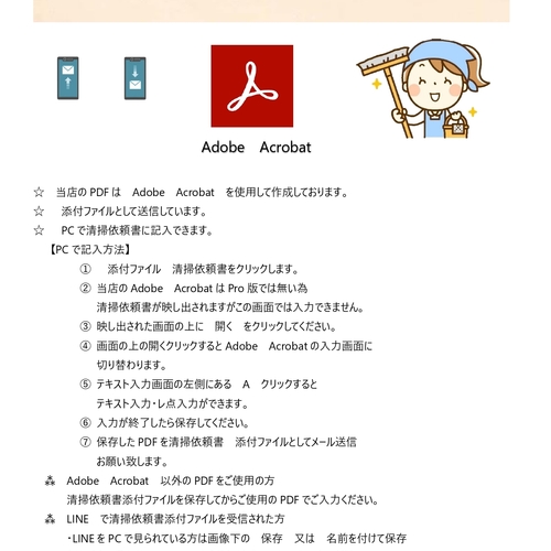 清掃依頼の用紙に確認したうえでのご依頼であることを注意喚起しております。