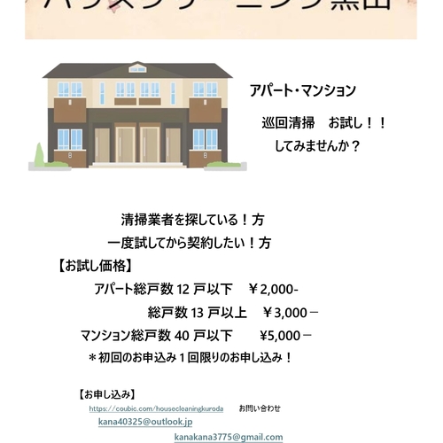 アパート・マンション巡回清掃 お試ししてみませんか?