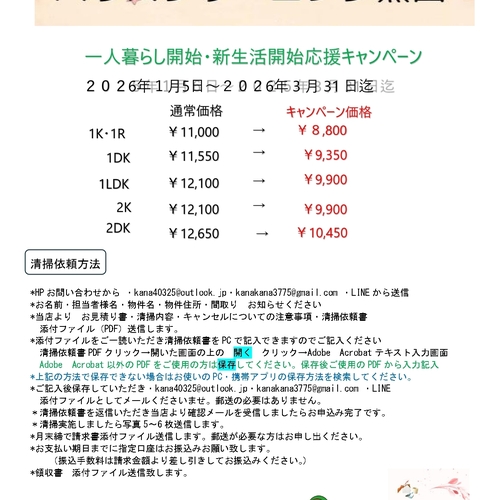 2026年1月5日~2026年3月31日まで一人暮らし新生活開始応援キャンペーン 予告おしらせ