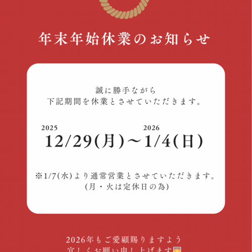 年末年始休業のお知らせ