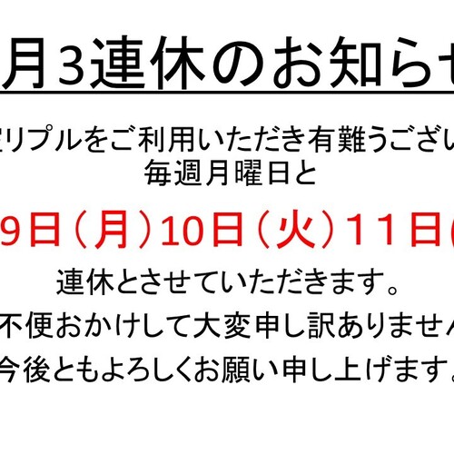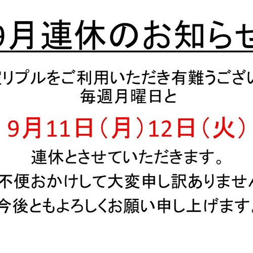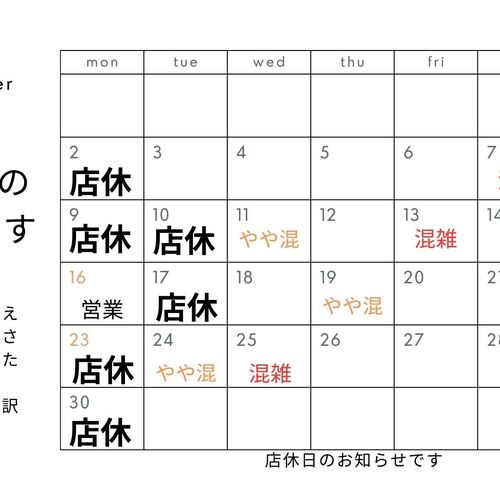 9月店休日のお知らせです
