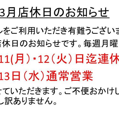 3月店休日のお知らせです