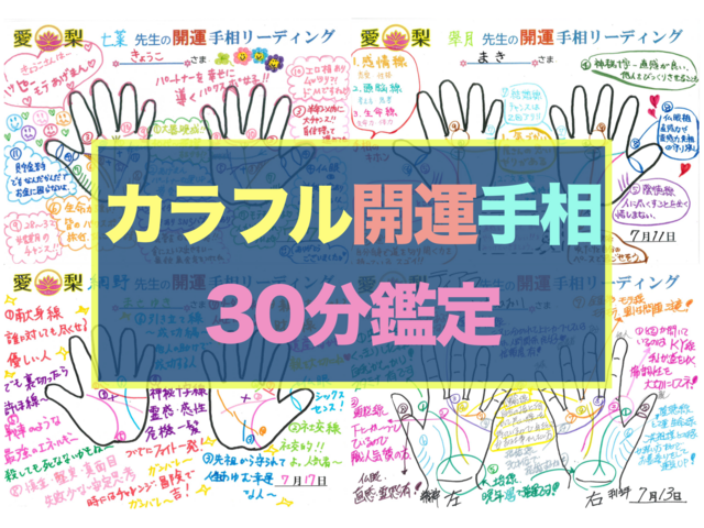 **こちらのカラフル手相鑑定を含む、総合鑑定をご希望の場合、40分のスタンダードコース以上のお申し込みをお願いいたします。