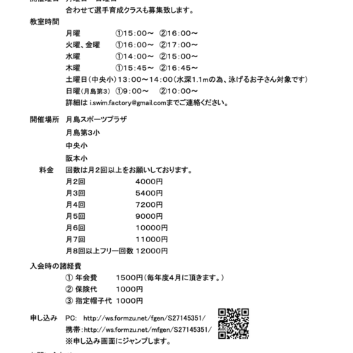 For inquiries, please contact i.swim.factory@gmail.com or via LINE.
