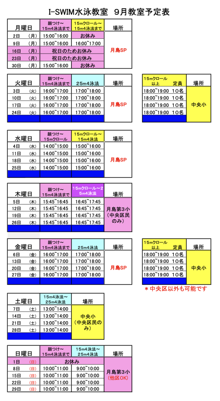 9月予定表