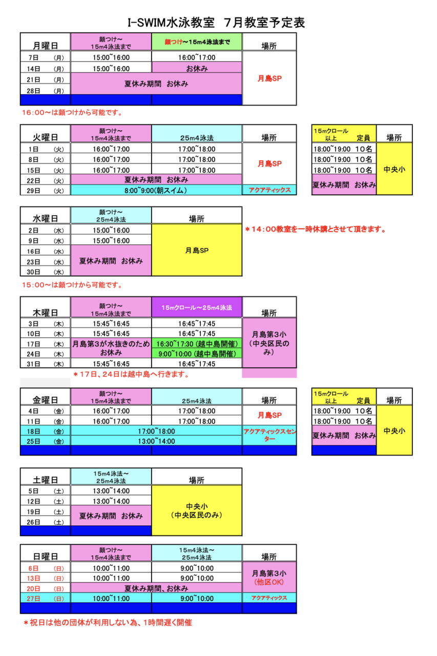 7月予定表