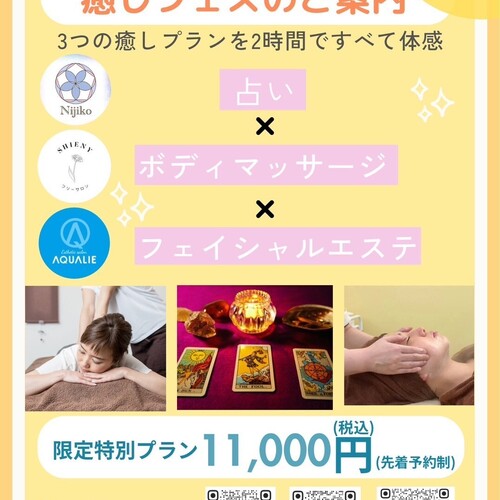 癒やしの時間を提供する、エステ、リラクゼーション、占いをお得なプランで特別に体験できます。