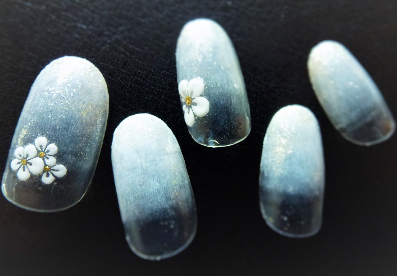 Glitter-gradation is not too flashy, suit any occasion, so if you are trying art nails for the first time, I would recommend it.(You can choose any colours you like!)